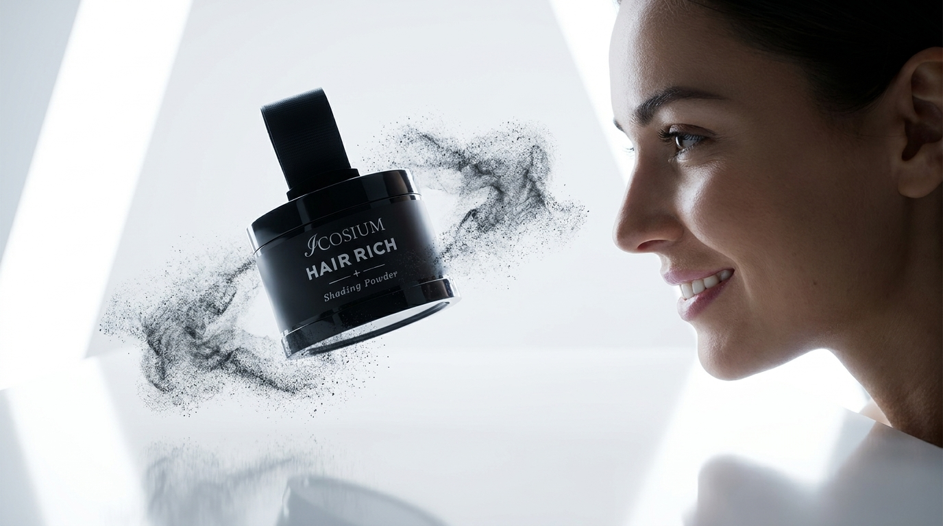 "Poudre de camouflage capillaire waterproof. Zones clairsemées, racines, tempes — couverts en 2 minutes. Personne ne voit rien."